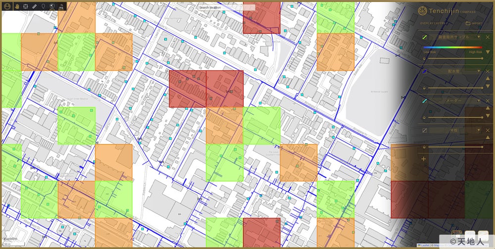 宇宙水道局は、衛星データとAI技術を駆使し、水道事業体や指定業者の効率的な漏水調査の実現を支援するクラウド型のマッピングサービスです。複数の人工衛星から取得するデータやオープンデータを活用し、100m四方の範囲で漏水リスクが高いエリアを特定します。電子化された給水台帳や配水管図と連携し、5段階評価の漏水リスクを一元管理。直感的で操作が簡単なインターフェースで、リアルタイムでデータを確認し、迅速な漏水検出と修理計画の立案を支援します。