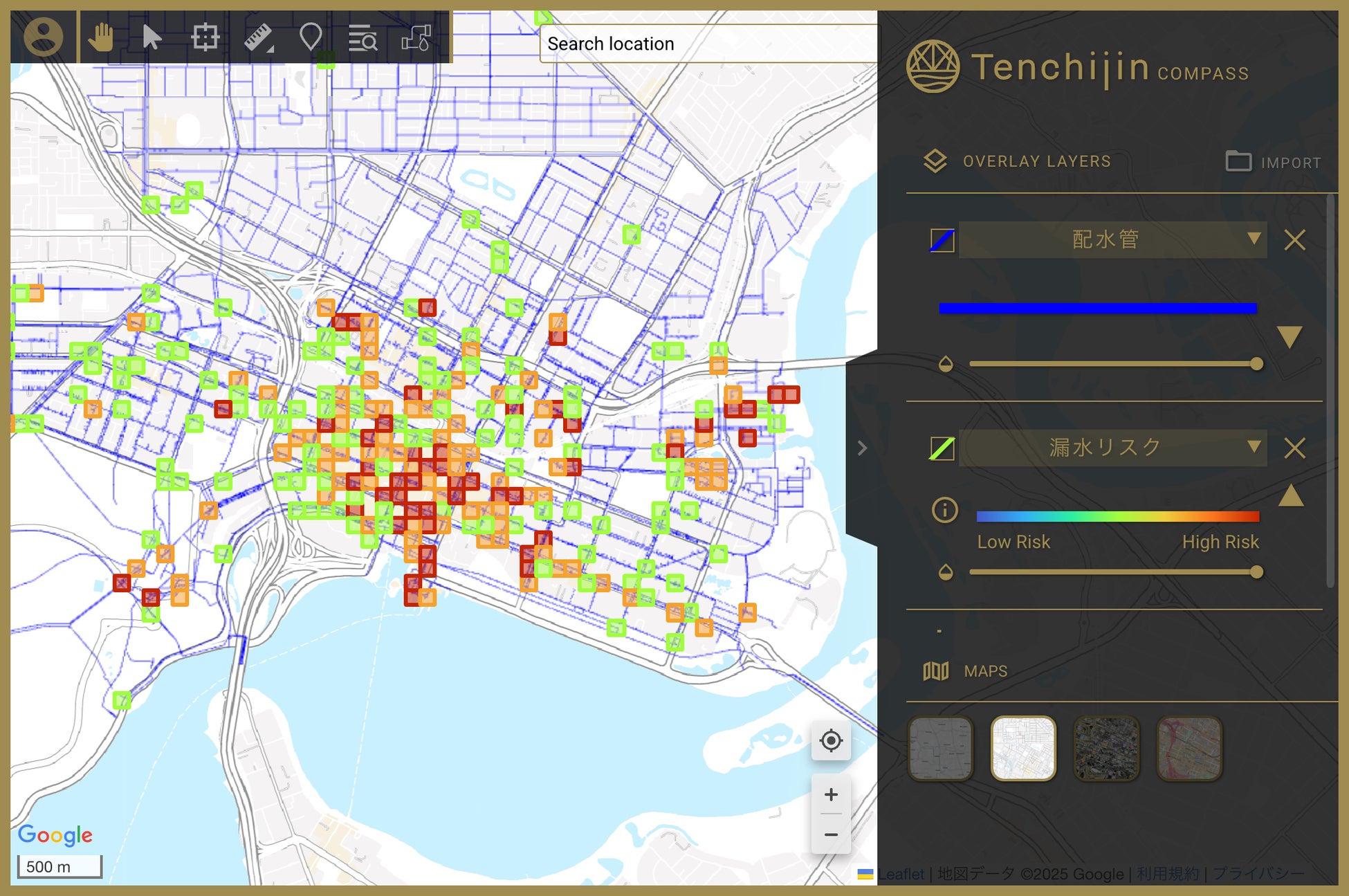 「天地人コンパス 宇宙水道局」の本質的な価値は、長年蓄積されてきた自治体のデータと最新の衛星技術を融合させることにあります。この融合から生まれる「漏水リスクの情報」という新たな視点により、従来の音聴調査や更新計画といったアプローチが進化すると考えています。